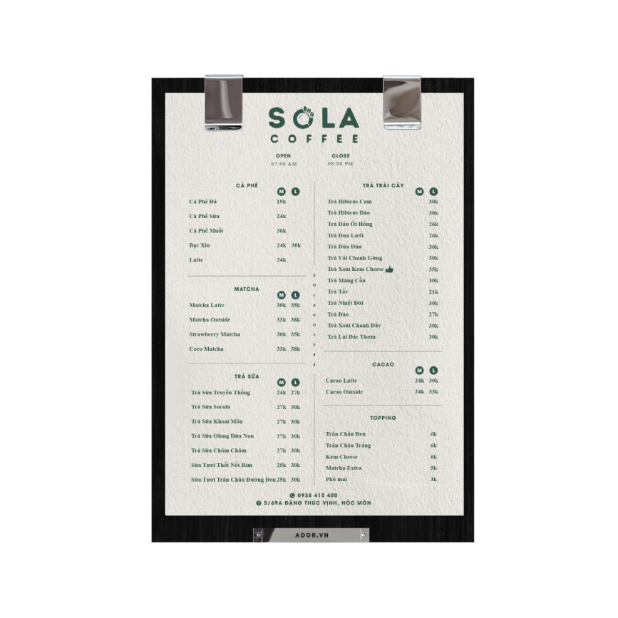 Menu SOLA Coffee: Câu Chuyện Về Sự Đa Dạng Hương Vị