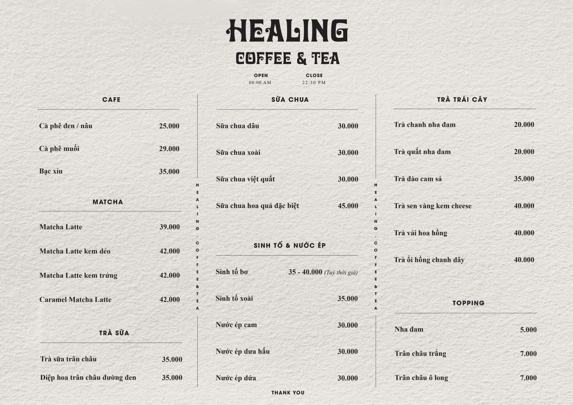 MENU HEALING COFFEE & TEA | THIÊN TRANG
